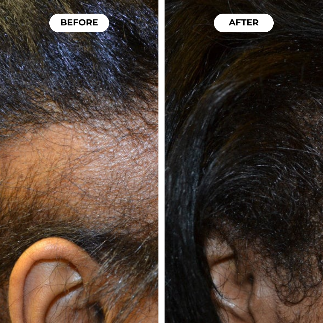 Most users notice reduced shedding and softer hair within 4–6 weeks, with visible growth and fullness around 8–12 weeks of consistent use. Everyone’s hair cycle is unique, so results may vary slightly.